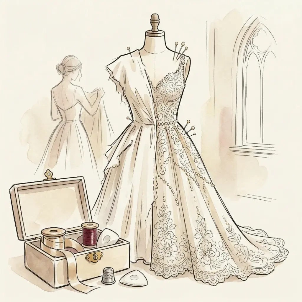 Wir verwandeln dein Brautkleid in ein persönliches Meisterwerk. Mit 20 Jahren Erfahrung und meisterhafter Schneiderkunst erschaffen wir dein Unikat direkt am Erfurter Domplatz.